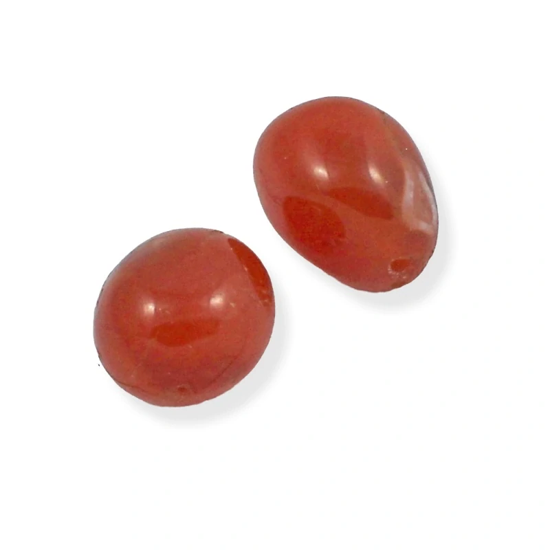 Minerálové korálky – tromlovaný nuget z karneolu s podélně vedenou dírkou. Foto ilustrační.