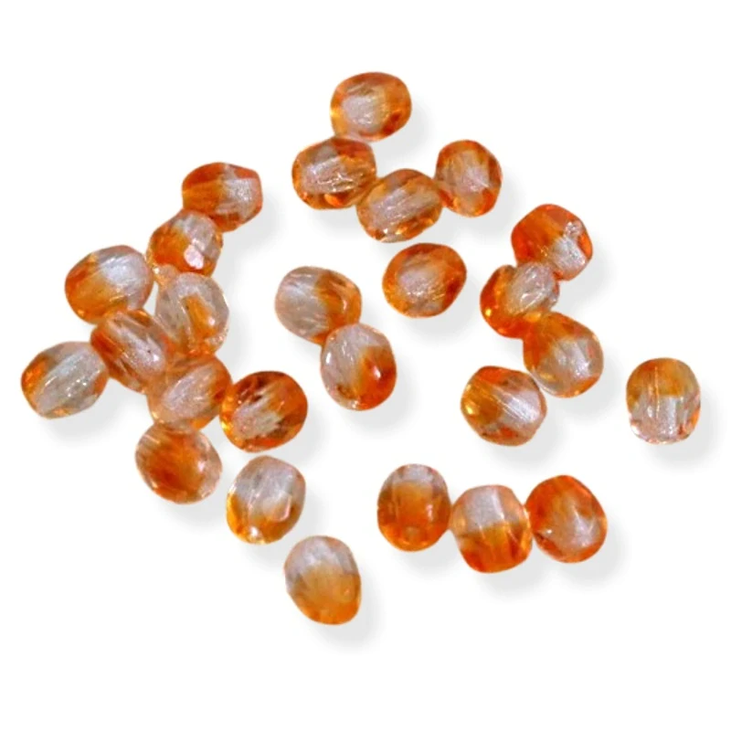 Korálky broušené oranžovo-čiré 4mm – 50 ks