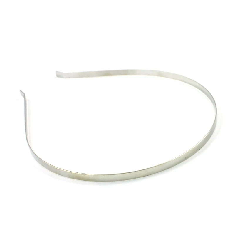 Čelenka do vlasů kovová platinová o šířce 5 mm a obvodu cca 37 cm. Lze ji použít přímo nebo jako základ na výrobu zdobnější varianty.