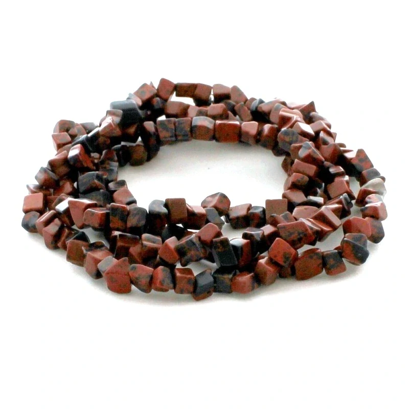 Obsidián mahagonový, vrtané zlomky – 20 cm návlekuSkladem 6 bal.28 Kč/ bal.