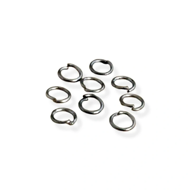 Spojovací kroužky o průměru 5 mm v povrchové úpravě antracit (= gunmetal), průměr drátu cca 0,7 mm.